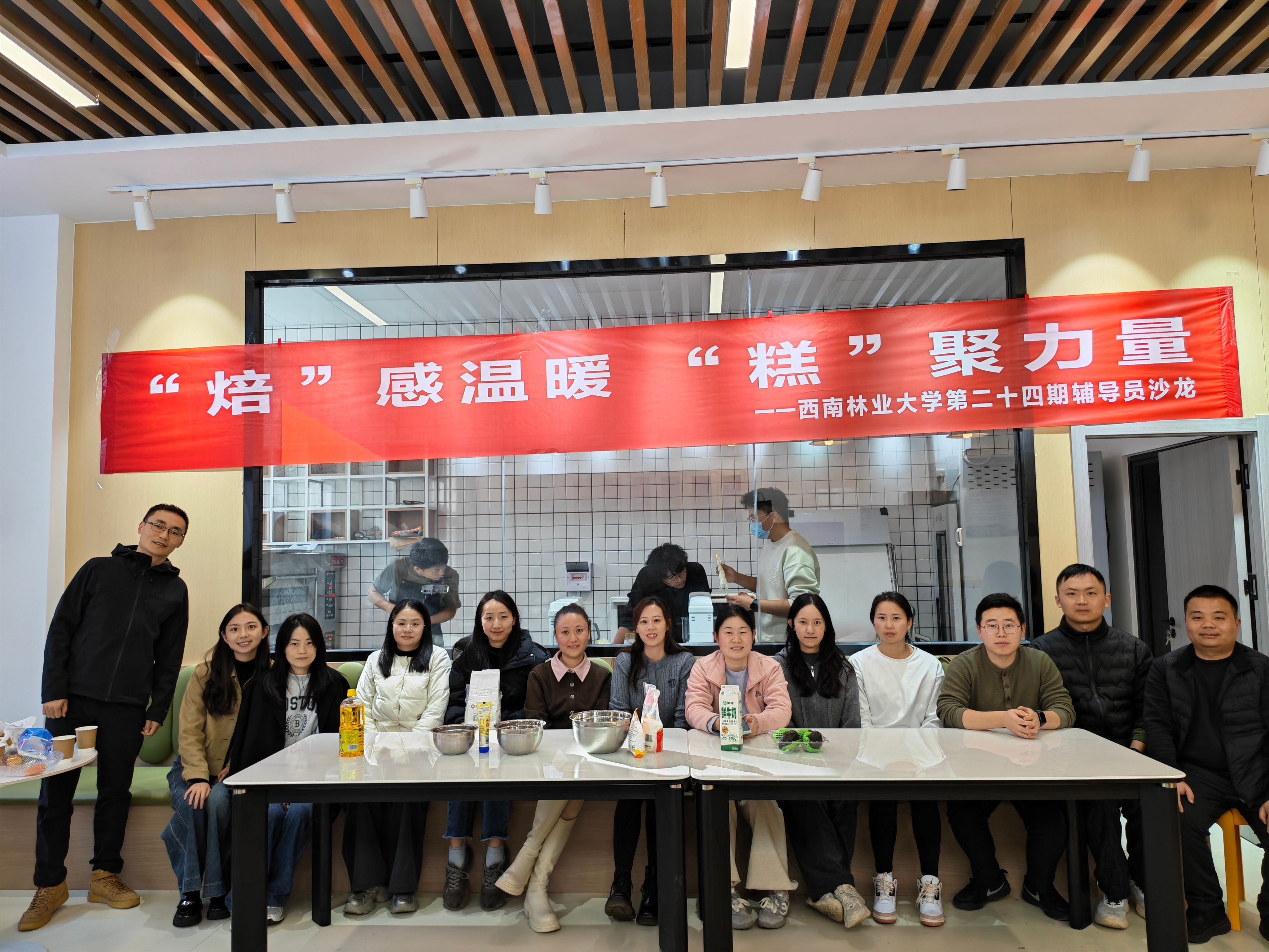12月12日,由员工处主办、yl1111永利集团、智翼科创领航辅导员名师工作室承办的以“焙”感温暖,“糕”聚力量为主题的第24期辅导员沙龙在生物楼112烘焙室举行,各公司辅导员代表和员工处相关老师参加活动。